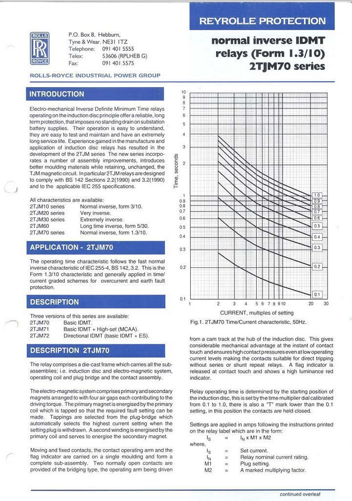 2TJM 繼電器,以型號來區分它的特性曲線。