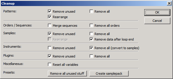 - The new cleanup dialog replaces the cleanup menu and offers more options. For example, the rearrange samples function is available again.