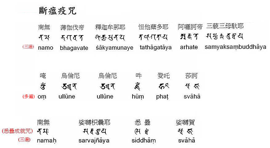 此咒出自《諸經日誦集要》,名為「斷瘟咒」,本咒僅有一句,是有截斷、去除之義,持此咒比其它要方便得多。若不善持至咒語者就持此咒,當您外出行走時都持此咒,避免厲鬼臨身,就可以保護自己了。