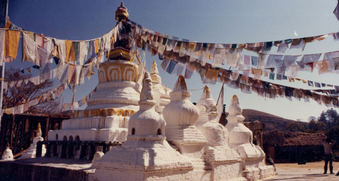 這座佛塔我沒去過(用別人的照片),不曉得去了以後會不會痛哭流淚?佛陀行菩薩道的故事真的很感人。有些尼瓦人繪畫方面很有天份,畫的風格大概是受了唐卡影響,將佛陀故事也畫成了"唐卡"樣式,看了非常喜歡。但是價錢不便宜,只好自我迴向:希望自己錢賺多一點,好多精美的佛教文物啊!!