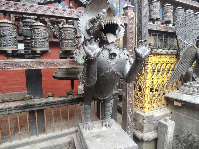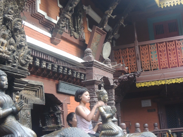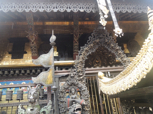 這真的就是標準的金剛乘寺院建築,台灣真的難得一見。其實整座寺院根本就是一座很了不起的藝術品。我在帕丹的時候,每天都一定去站一下,感覺一下那種氣場。好幾次都忍不住拿出錢來供養,有位尼瓦族寺院執事,開始看見我就同我收門票,後來他也認識我了。每次我都給多一點,多出來的部分就是供養,最後我也乾脆學他們,把錢供給釋迦牟尼佛,到今天想起來,我覺得可以在那裏待很久。真希望自己可以學說尼瓦語,因為尼瓦族法師,會講英語的人也是有限。不然可以向他們學到好多這座廟宇的相關知識。