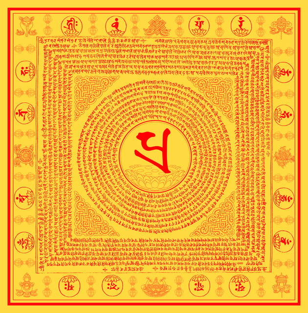 唵.一切如來、一切明咒,真常寂靜灌頂於我,大金剛甲印、所卬、