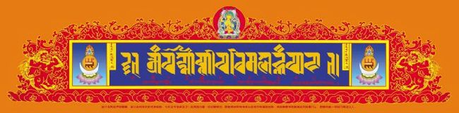此咒作用:如仅凝视即能获得无量之加持﹔若将此咒高悬于门坎之上,或行人所经之高处,凡从此咒下经过一次者,即得无上威神加持,三业渐证清无垢,灭除百千万劫重罪。