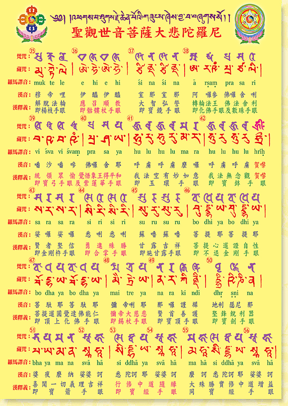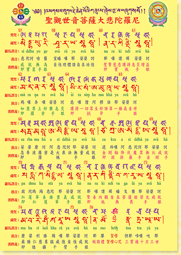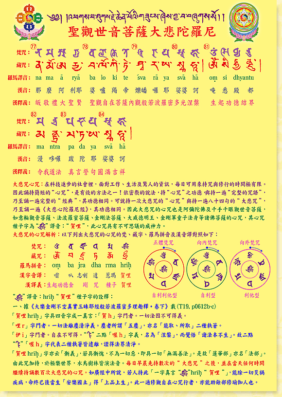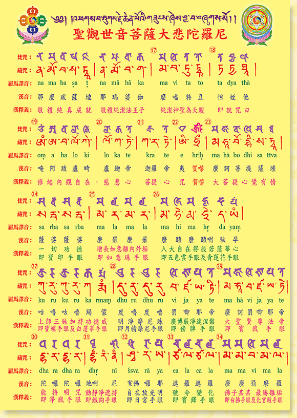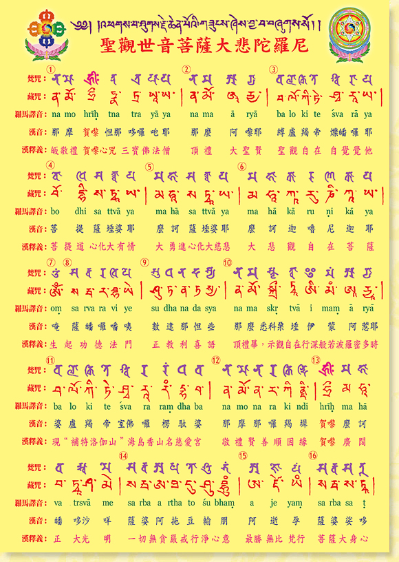 本文大悲咒由金剛上師唱誦三篇,之後是國語課誦及藏咒。