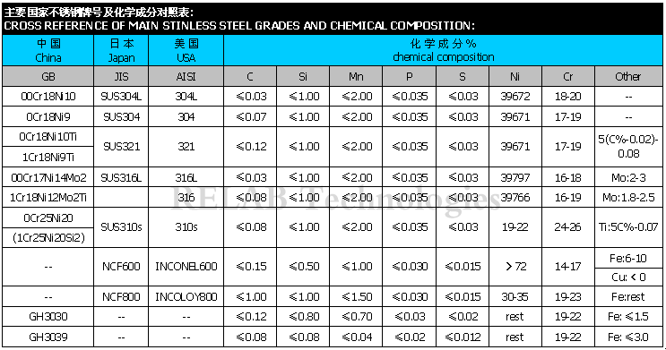因为不同的国家有不同的不锈钢牌号和标准.